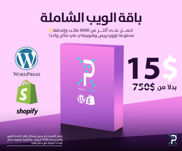 باقة الويب الشاملة من Pixel Store هي الحل الأمثل للمطورين وأصحاب المواقع والمتاجر الإلكترونية.